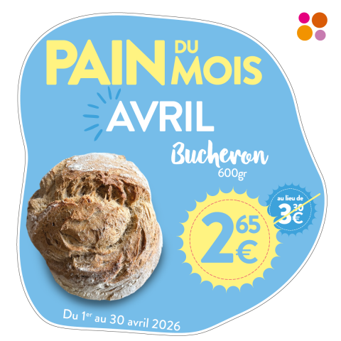 Pour ce mois d'avril, nous vous proposons notre pain Bûcheron au prix de 2,65€ au lieu de 3,30€ !