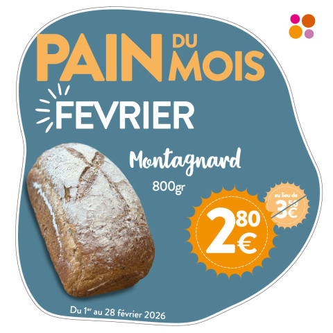 Pour ce mois de février, nous vous proposons notre pain montagnard au prix de 2,80€ au lieu de 3,50€ !